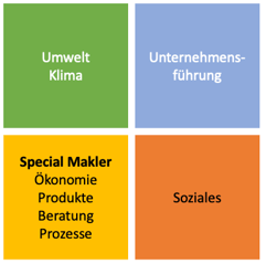 Exemplarisch das Thema ökologisch sinnvolle Online-Beratung von Kunden. Unstrittig wird durch den Verzicht auf Beratung vor Ort mit großem Aufwand an PKW- und Fahrtkosten, Parkplatz und Belastung der Umwelt durch CO2-Austoss ein ökologischer Beitrag durch Online-Beratungen geleistet. Diese wird in der Analyse und dann im Nachhaltigkeitsbericht mit Bewertungspunkten gewürdigt: